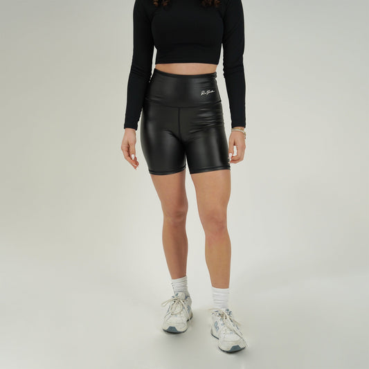 VEGAN LEATHER HIGH-WAIST BIKER SHORT 7" - BLACK