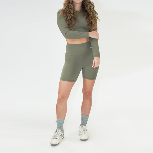 HIGH-WAIST BIKER SHORT 7" - OLIVE