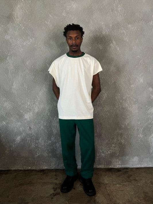 MADE IN ITALY | CONTRAST RAWCUT TOP - CREAM/GREEN [MIT-CR1]