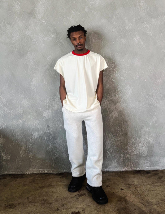 MADE IN ITALY | CONTRAST RAWCUT TOP - CREAM/RED [MIT-CR1]