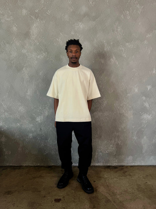 MENS CROPPED BOXY LUXURY TEE - CREAM [RP29]
